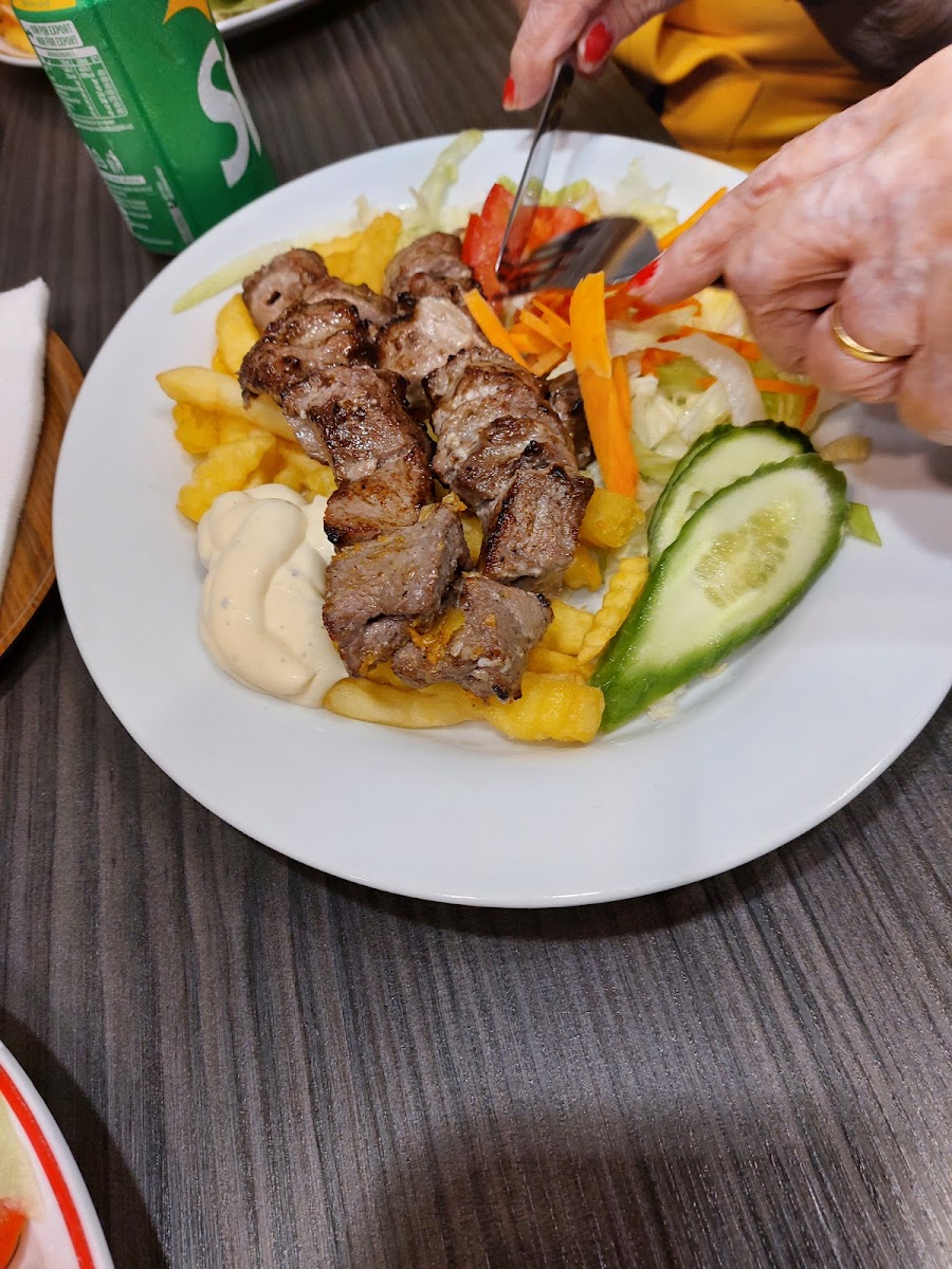 Tasty food, very friendly chef, who is trying to meet all your demands. 2 Euro plus when you eat inside.